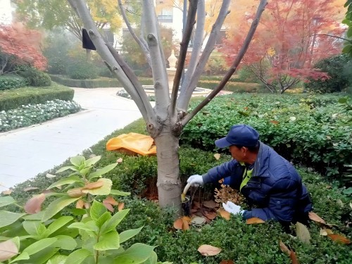 涂白工作需要由经过专业培训的工作人员来完成。他们手持特制的涂白工具,如刷子或喷枪等,从树干的基部开始向上涂白,涂白高度一般在离地面 1 - 1.5 米左右,这个高度既能有效保护树干的关键部位,又便于操作和观察。在涂白过程中,要确保涂白剂涂抹均匀,不留死角,涂层厚度也要适中,一般控制在 2 - 3 毫米左右,过薄可能起不到应有的保护作用,过厚则容易出现开裂、脱落等现象。工作人员会边涂白边检查,保证每一棵大树的涂白质量都能达到公司的标准要求。